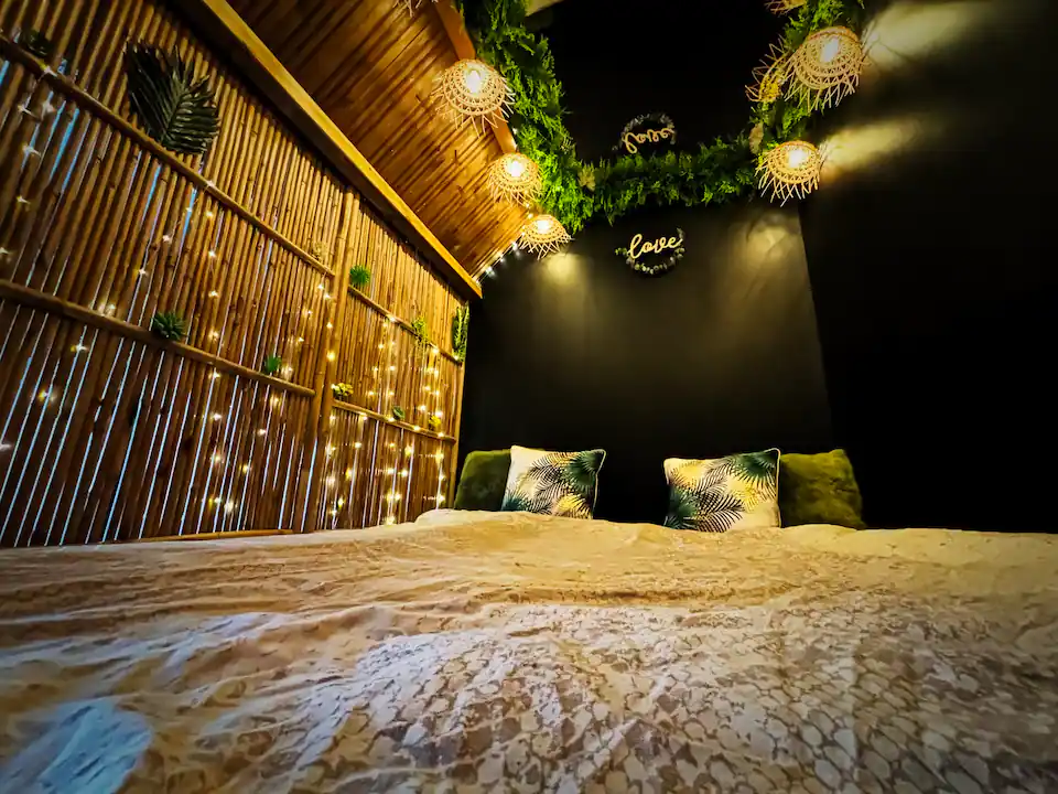 Évadez-vous dans la Jungle de Zoé, une chambre unique au décor tropical dépaysant. Plantes exotiques, ambiance naturelle et confort moderne s'allient pour un séjour où détente et immersion en pleine nature sont au rendez-vous.